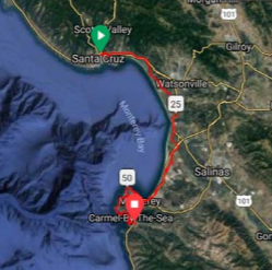 • On Monday, Oct. 15, the riders will use State Route 1 from Santa Cruz to Carmel.