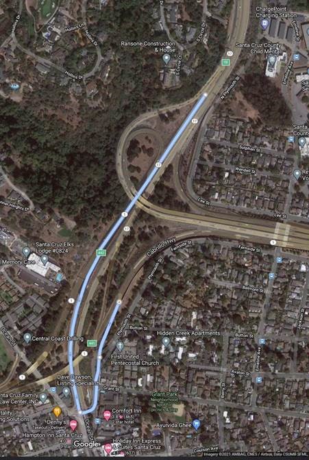 A detour will be in place. Motorists on southbound Highway 17 will be directed to take the Ocean St. offramp and turn left on Plymouth St. to enter southbound Highway 1.